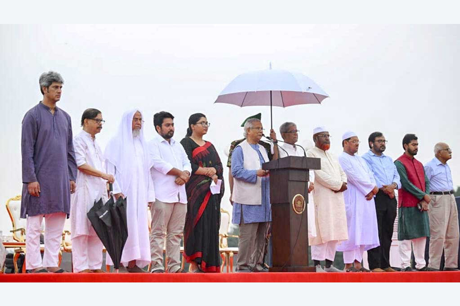 Yunus read the proclamation shortly after 5pm on Tuesday at the South Plaza of parliament, flanked by representatives of major political parties, marking the first anniversary of the Uprising that brought down the Awami League government.