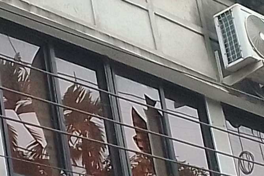 Police said bricks and stones were thrown at the building, smashing several windows. Two cars parked inside the premises were also damaged, bdnews24.com reports.