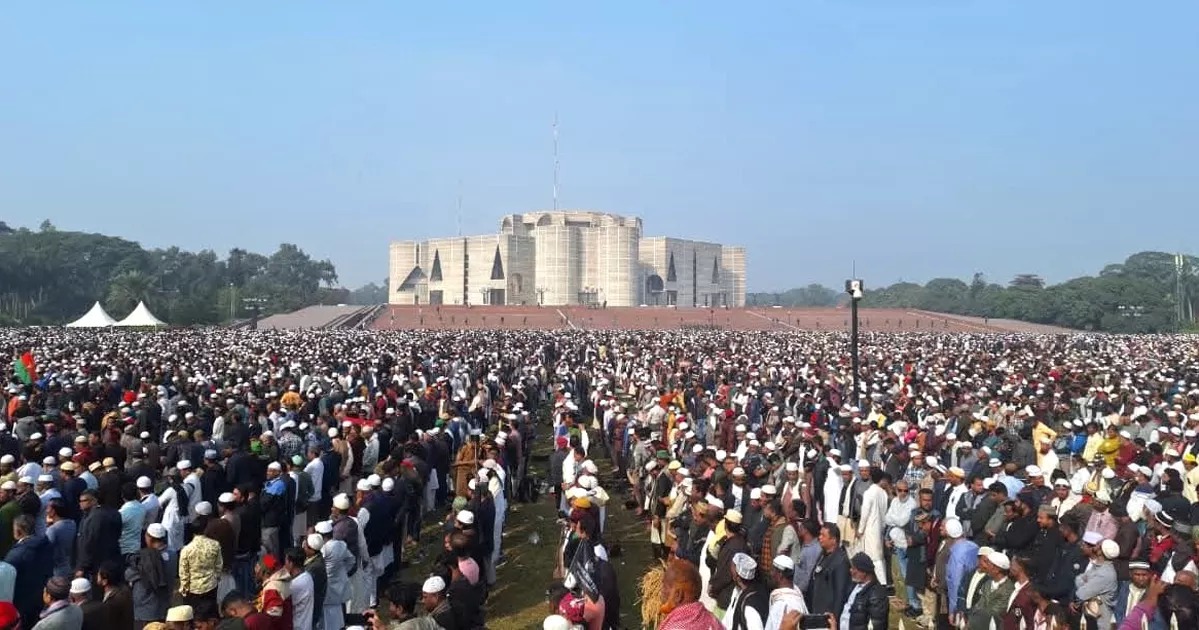 Mufti Abdul Malek, Khatib of the national mosque Baitul Mukarram, led the janaza under the bright winter sun at around 3:4 pm.