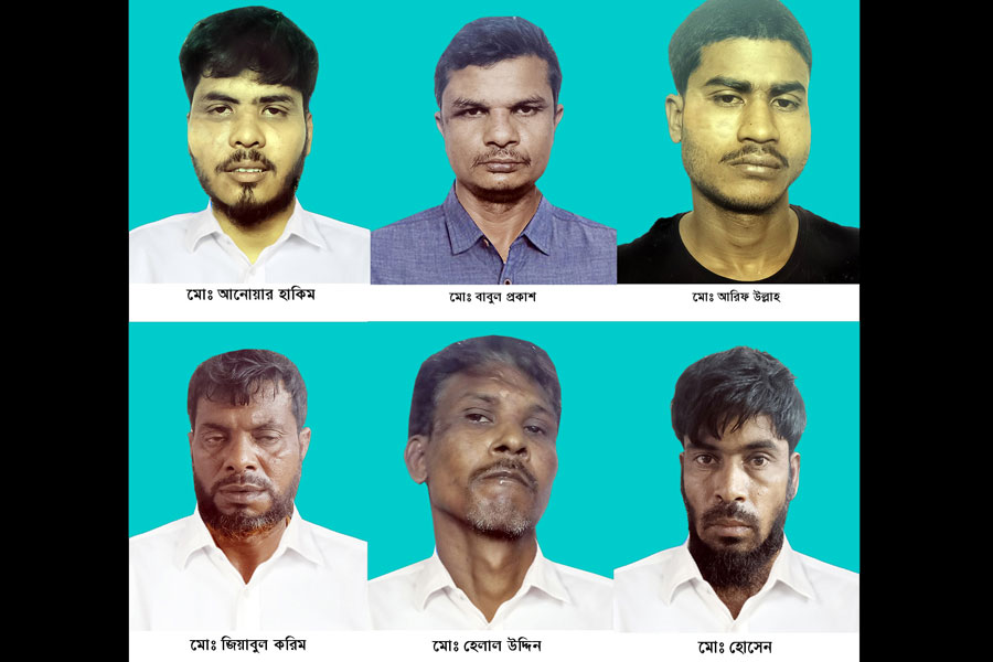 Preliminary interrogations revealed that four of the detainees were directly involved in the crime, while the remaining two assisted by providing critical information. The suspects have been identified as Md Babul Prakash (44), Md Helal Uddin (34), Md Anwar Hakim (28), Md Arif Ullah (25), Md Ziabul Karim (45), and Md. Hossain (39).