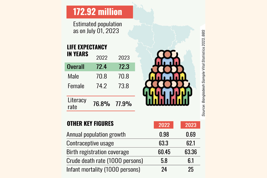 The Office for National Statistics of Bangladesh - Bangladesh Bureau of Statistics (BBS)-has stated this in its key publication styled Bangladesh Sample Vital Statistics 2023.