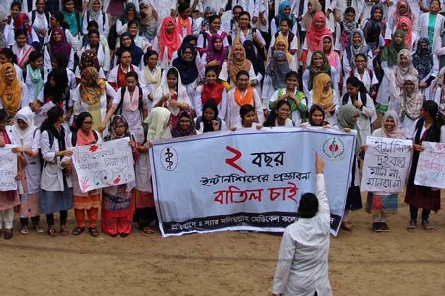 Enraged medical students organised a protest rally and took to social media to vent their fury on Saturday against the government’s proposal of implementing a two-year internship programme for aspiring doctor.
