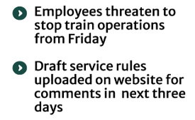 Officials and employees under grade 9 to 16 recruited in Dhaka Mass Transit Company Limited (DMTCL) threatened to stop train operations from Friday if the company's service rules are not approved by tomorrow (Thursday).