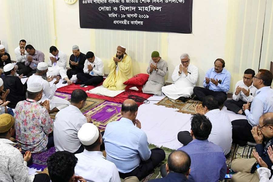 A milad and doa mahfil was held at the Prime Minister's Office (PMO) on Sunday, marking the 44th martyrdom anniversary of Father of the Nation Bangabandhu Sheikh Mujibur Rahman and National Mourning Day.