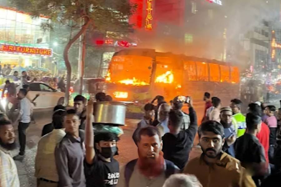 Arsonists have set a passenger bus ablaze in Dhaka’s North Badda.