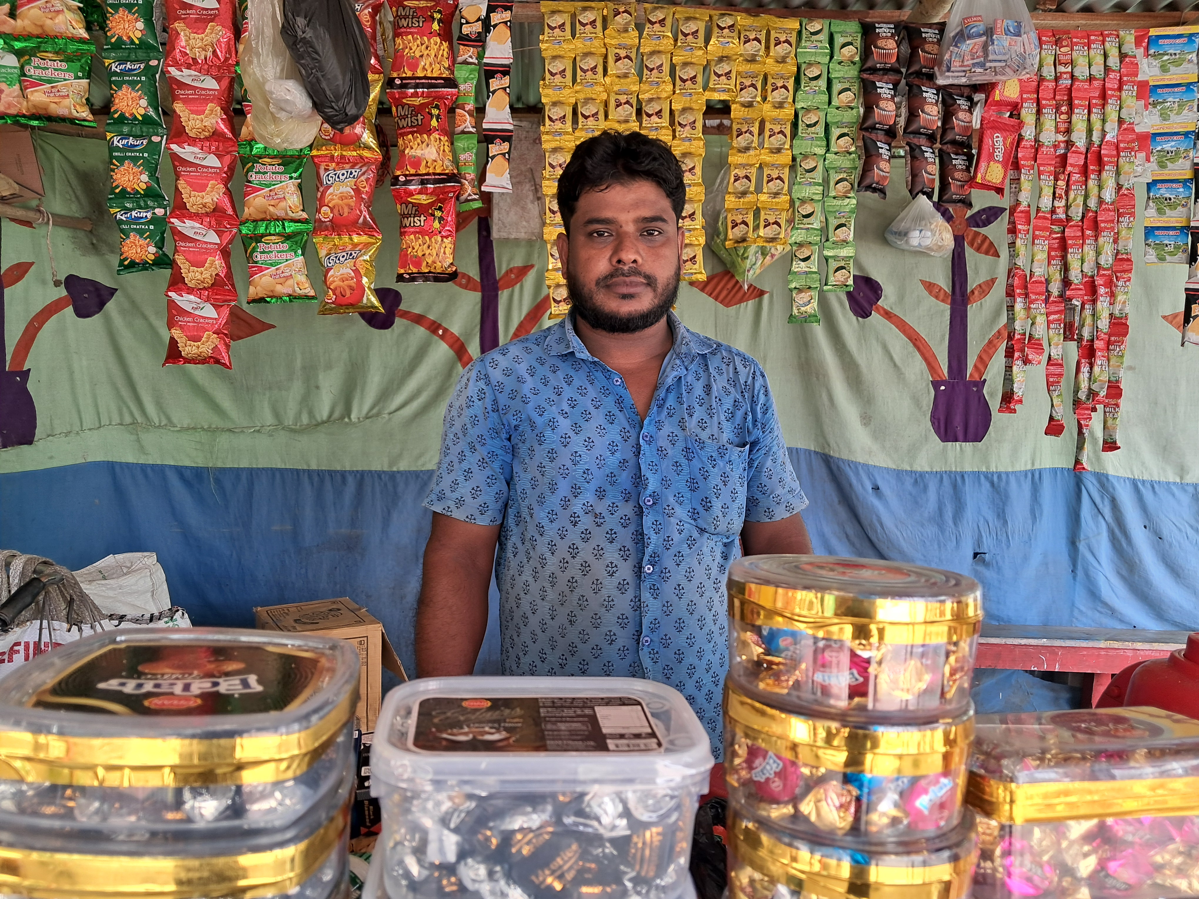 He lives a kilometre away and has not been affected by erosion. But he knows people who have had their property devoured by the river that becomes turbulent in the monsoon. He has been running a small shop on the current riverbank for nine years, selling snacks and beverages.