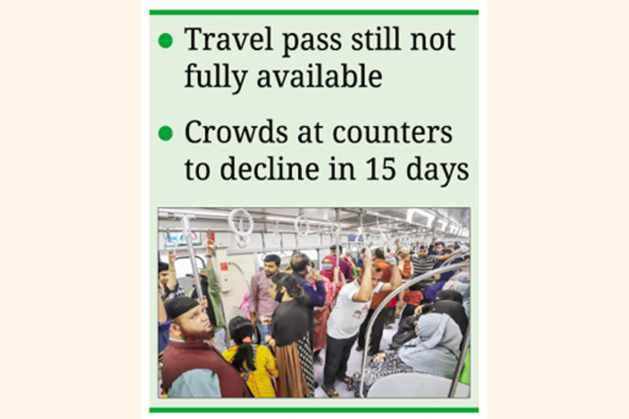 "The crowds at ticket counters and machines would be reduced within 15 days as the sale of the MRT pass has already been increased," said metro-rail-company secretary Mohammad Abdur Rouf.