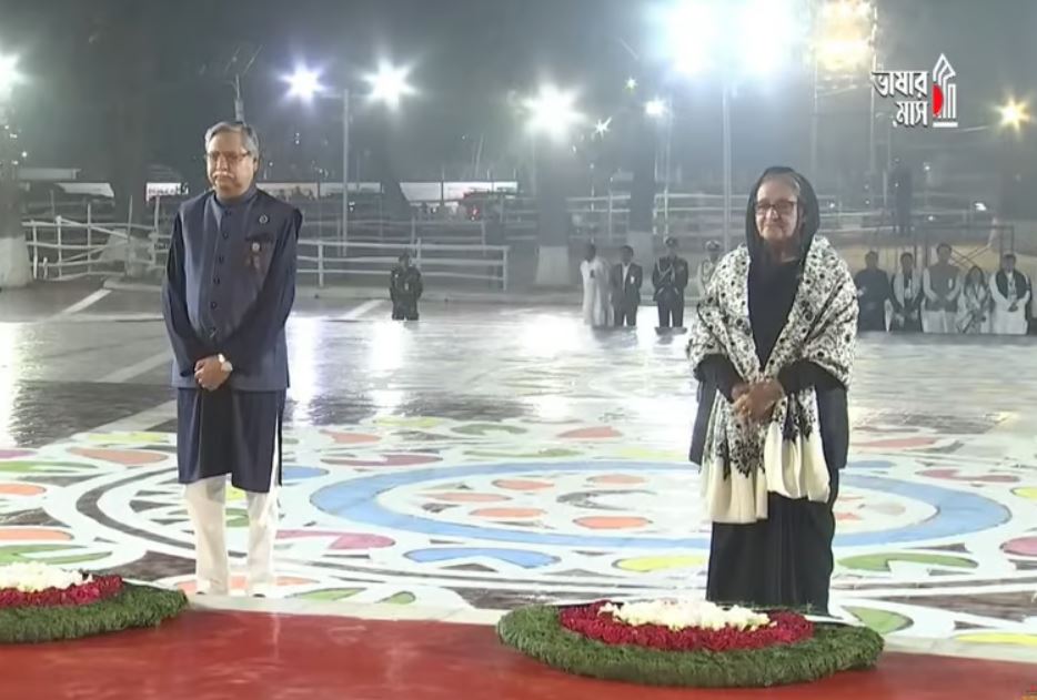 The observance of the day, Shaheed Dibosh or Martyrs’ Day, kicked off at 12:01 am on Wednesday formally with President Mohammed Shahabuddin and Prime Minister Sheikh Hasina placing wreaths at the Central Shaheed Minar.