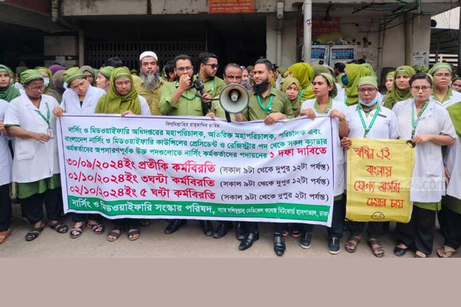 Under the banner of the Nursing and Midwifery Reform Council, they demanded the withdrawal of cadre service officials from the Bangladesh Nursing and Midwifery Council (BNMC) and replace them with competent and experienced nursing professionals.