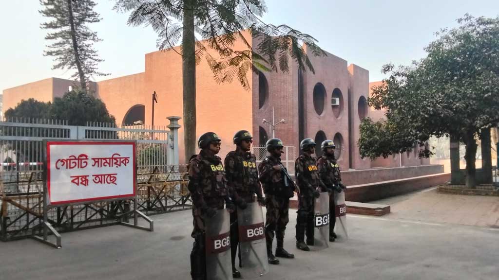 Two major roads -- Manik Mia Avenue on one side of the parliament complex and Lake Road on the other -- were closed to general traffic from 8am, prompting diversions through adjacent routes, including the road beside the July Museum.