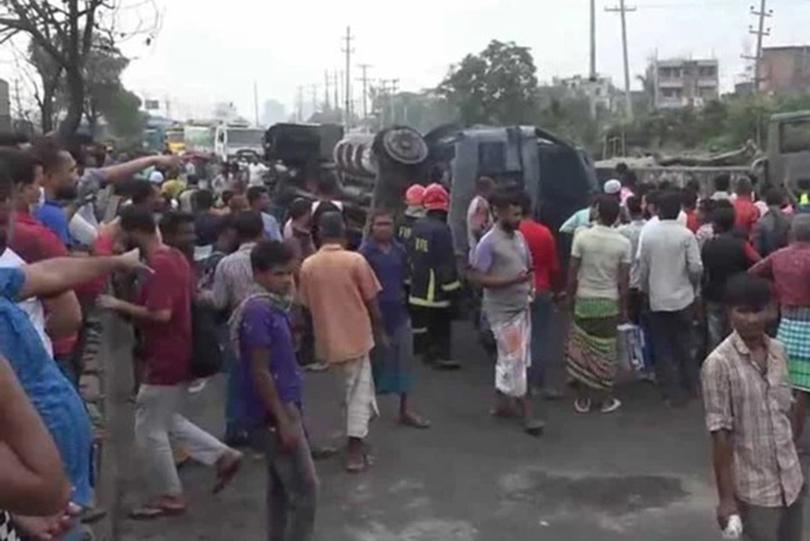 The fire quickly spread and engulfed two other trucks and a car on the Dhaka-Aricha highway early in the morning, according to Savar Fire Service Station Officer Nurul Islam.