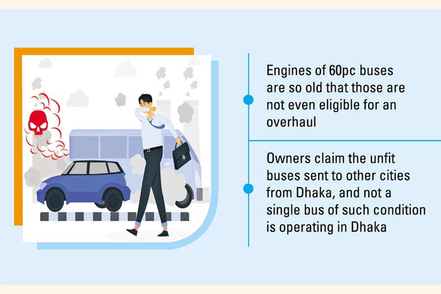 Air quality specialist Prof Ahmad Kamruzzaman Majumder told the FE that the unfit buses emit harmful smoke while ascending to the flyovers and elevated expressways or roads as the old engines do not have the capacity to run properly.