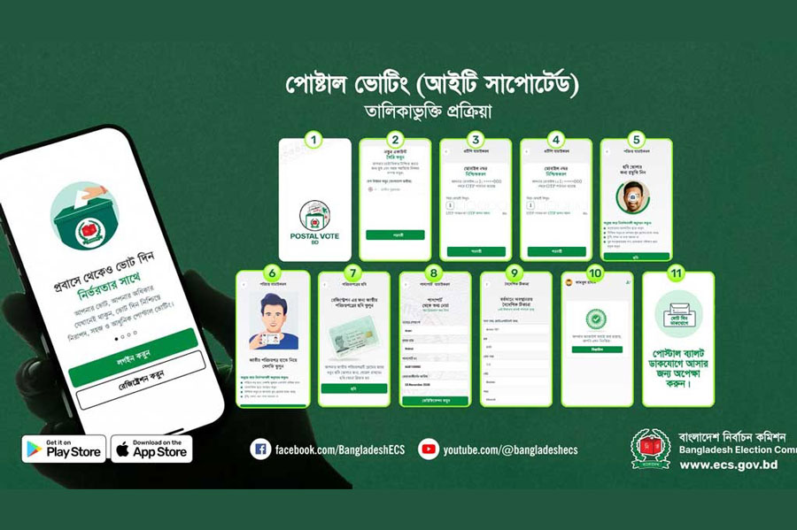 The app for postal voting was launched on Tuesday for expatriate Bangladeshi voters and three other categories of Bangladeshi citizens.