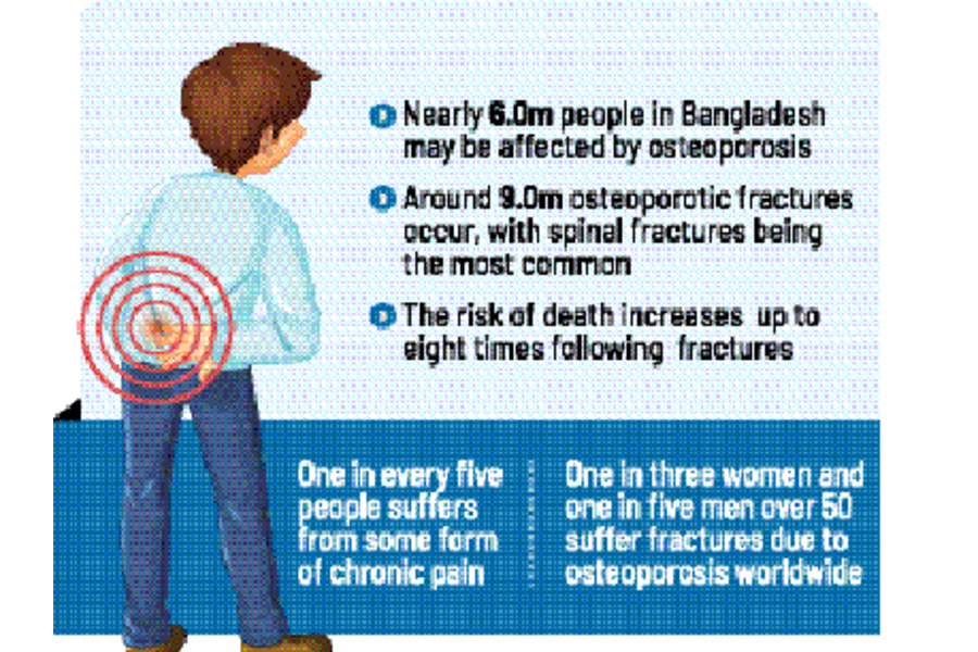 According to the 2022 national census, around 30 million people in Bangladesh are aged 50 and above. In neighbouring India, about 20 per cent of people suffer from osteoporosis. Nearly 6 million people in Bangladesh may be affected by this condition.