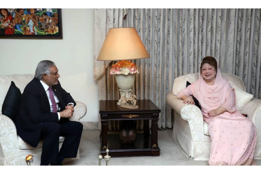 The visiting Pakistan’s Deputy Prime Minister, Foreign Minister and Senator Muhammad Ishaq Dar met former Prime Minister and BNP Chairperson Begum Khaleda Zia at her Gulshan residence this evening.