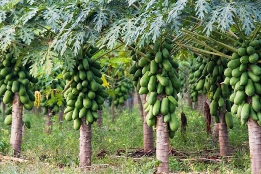 Upazila agriculture officer of Debiganj Abdulla-Al-Mamun told BSS, papaya plant needs a little space to grow. Two papaya saplings need minimum 5 to 6 feet space to grow fast. It takes only three months after plantation to blooms in a favourable weather condition.