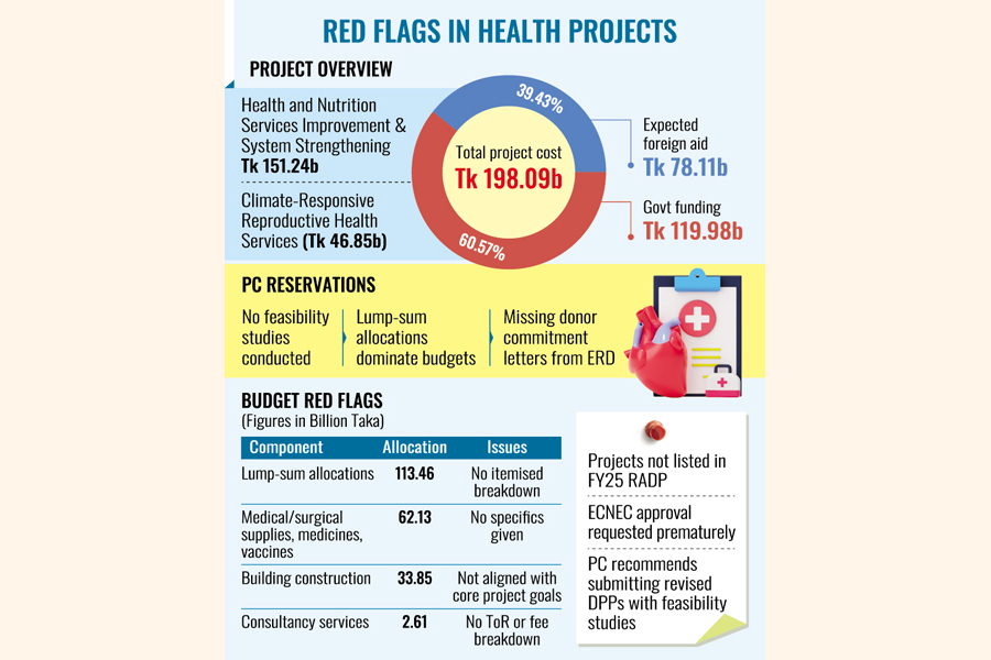 Two ambitious health-sector projects worth Tk 198.09 billion have hit a major scrutiny, as the Planning Commission (PC) has pushed back against their approval citing serious procedural and financial gaps.