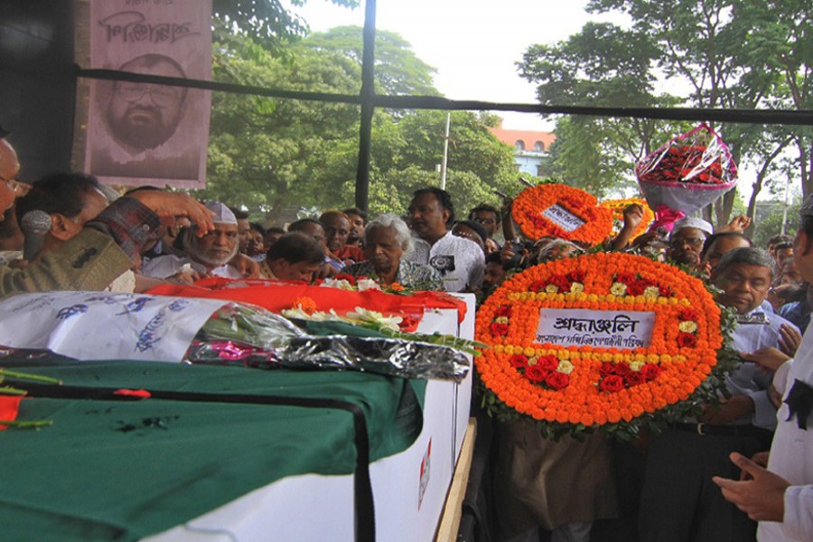 The mortal remains of the BNP vice-chairman was taken to the Shaheed Minar at 12:10pm after a namaz-e-janaza at the south plaza of Parliament.