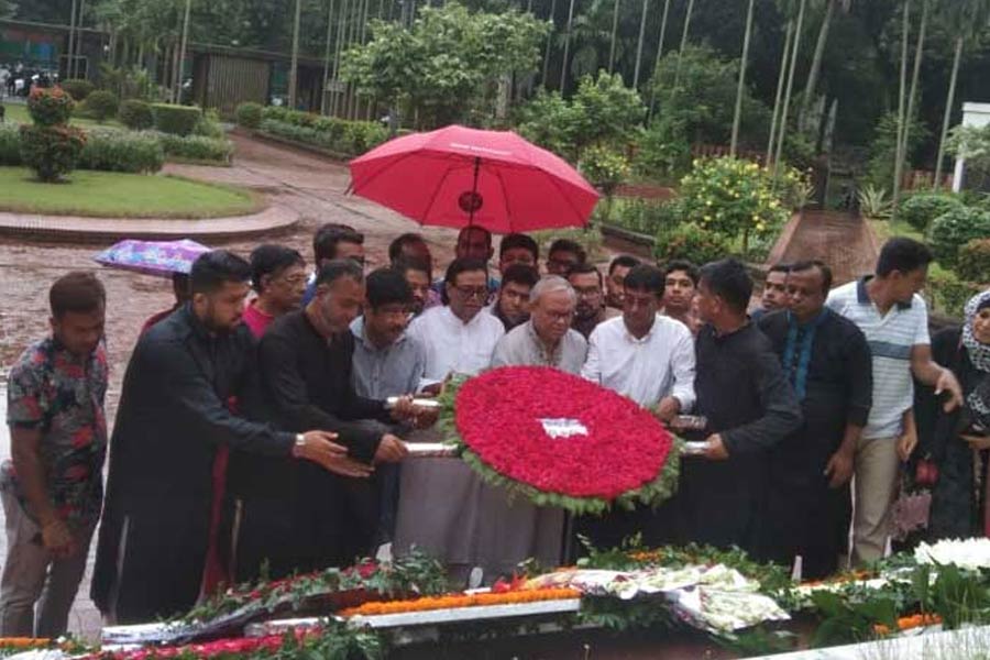 In the early hours of Tuesday, BNP leader Ruhul Kabir Rizvi led party leaders and activists and placed floral wreaths to pay homage to the national poet.