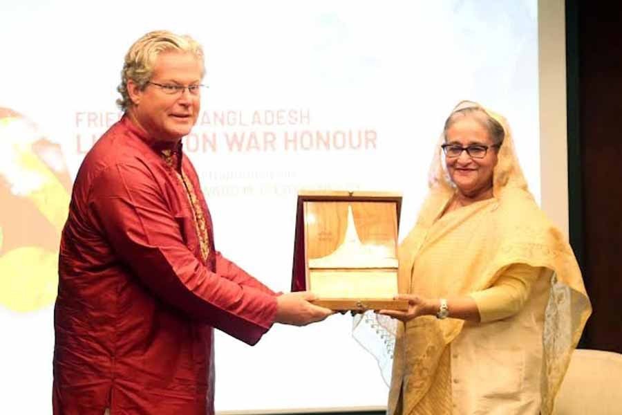 Prime Minister Sheikh Hasina today (Oct 31, 2022) conferred "Friends of Liberation War Honour" on US Senator Edward M Kennedy Sr for his great contribution to Bangladesh's Liberation War, BSS reports.