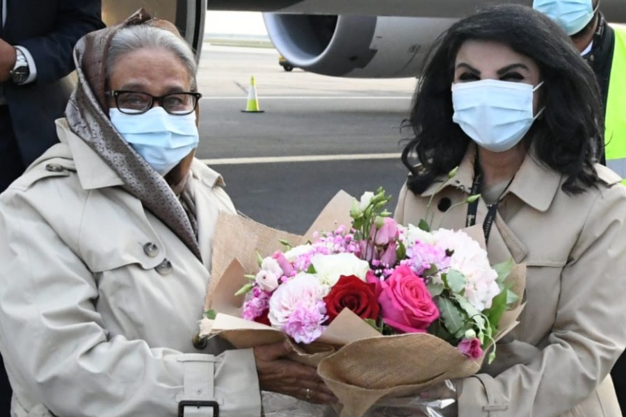 Bangladesh High Commissioner to the UK Saida Muna Tasneem received the Prime Minister at the airport, according to Bangladesh High Commission in London.