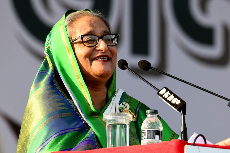 The prime minister reached Chattogram in the morning for a day-long visit to join several programmes including the rally as part of her party's election campaign that started from Jashore to drum up public support in favour of AL.