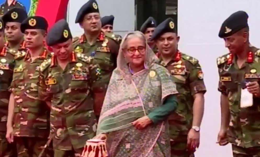 On her arrival at the venue, the prime minister was received by Chief of Army Staff General S M Shafiuddin Ahmed.