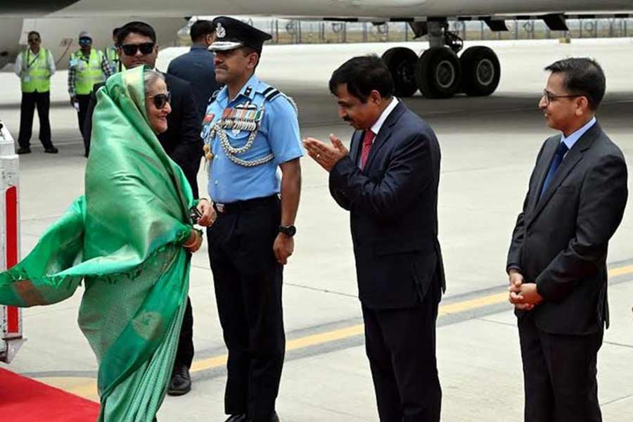 The prime minister was received by a high-level Indian delegation and Bangladesh High Commissioner to India Md. Mustafizur Rahman at the Palam airport.