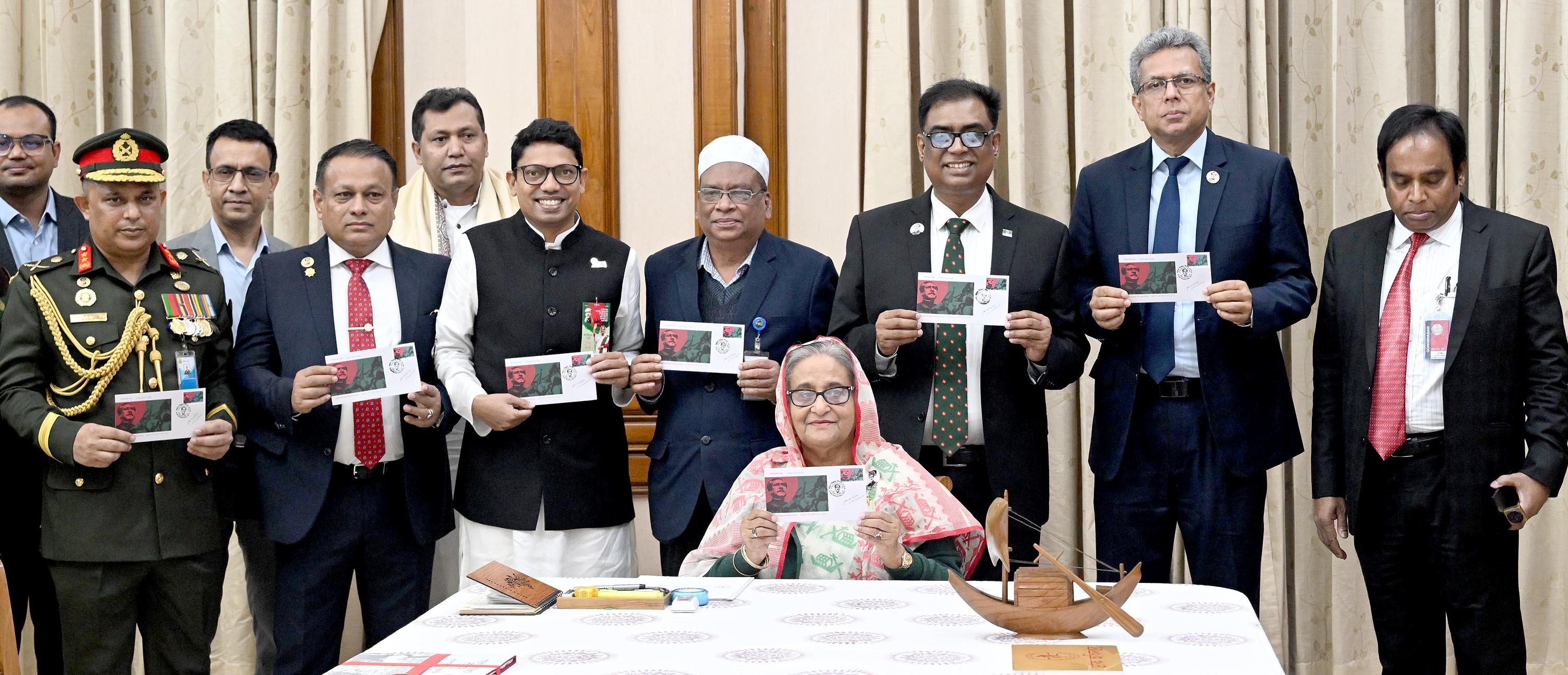 Prime Minister Sheikh Hasina on Saturday released a special commemorative postage stamp, first-day cover, and a data card on the occasion of the 53rd Victory Day.