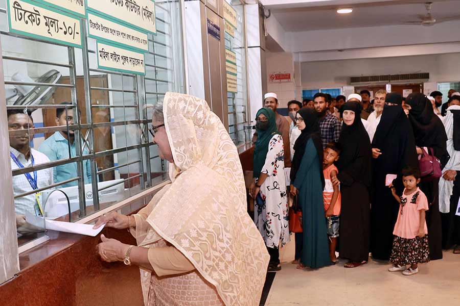 She then purchased a Tk 10 ticket from the counter before getting her eyes checked, according to Hasan Jahid Tusher, the prime minister's deputy press secretary.