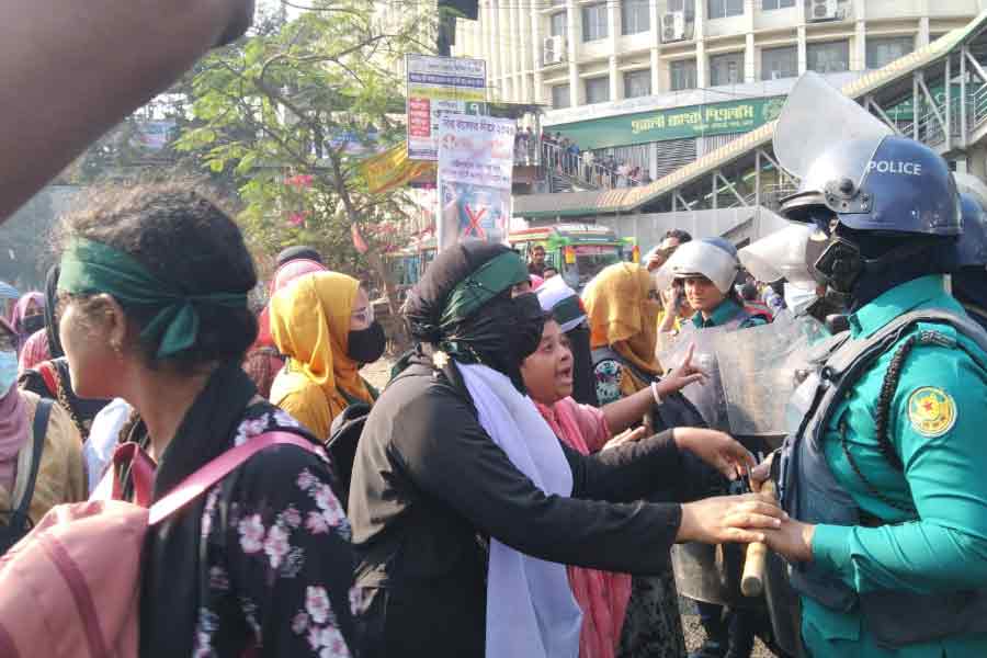 Several female protesters fell sick and three of them were taken to Dhaka Medical College Hospital.