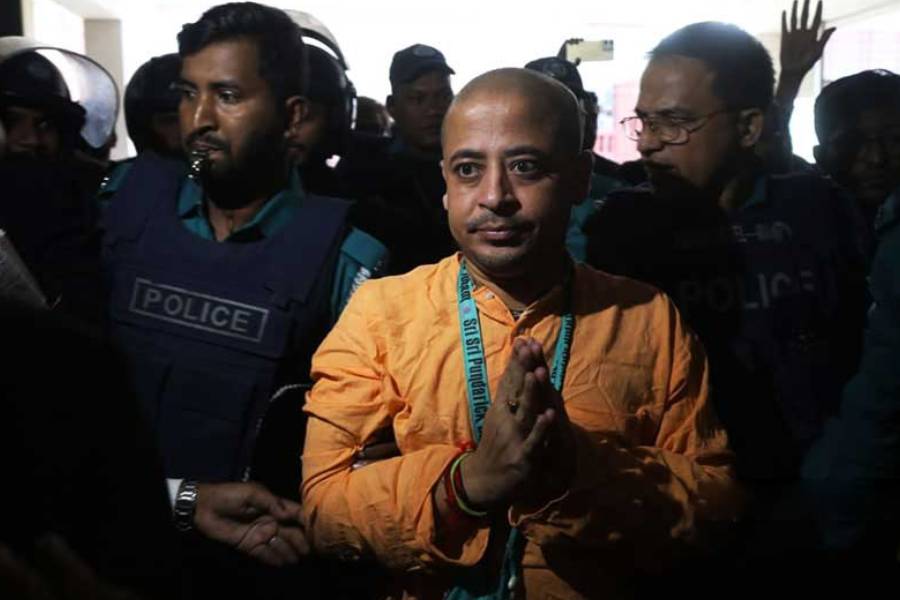When Chinmoy’s bail was rejected on Nov 26, members of the Sanatani community launched a violent protest outside the court, surrounding the prison van. Police eventually used sound grenades to disperse the crowd after two-and-a-half hours and escorted Chinmoy to jail.