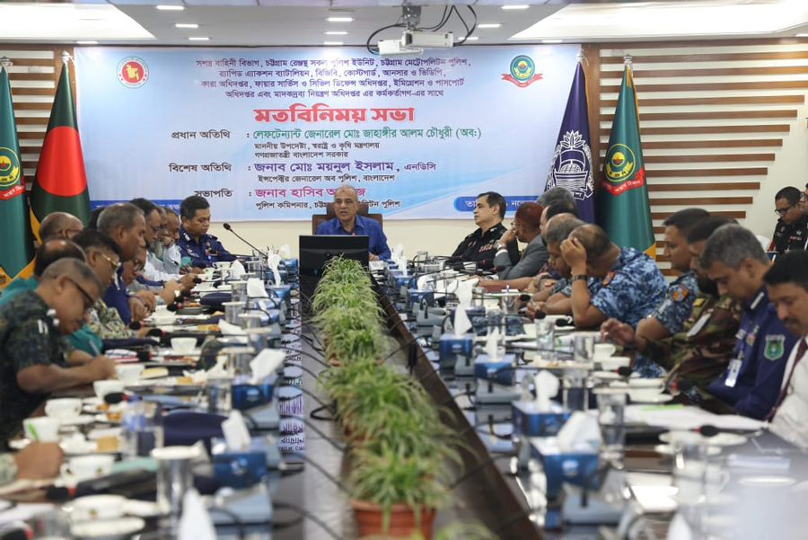The meeting, presided over by CMP Commissioner Hasib Aziz, was attended by several senior officials, including Inspector General of Police Mohammad Maynul Islam, RAB Director General AKM Shahidur Rahman, DIG of Chattogram Range Md Ahsan Habib Palash, Additional Divisional Commissioner Mohammad Nurullah Nuri, and Chattogram Deputy Commissioner Farida Khanam.
