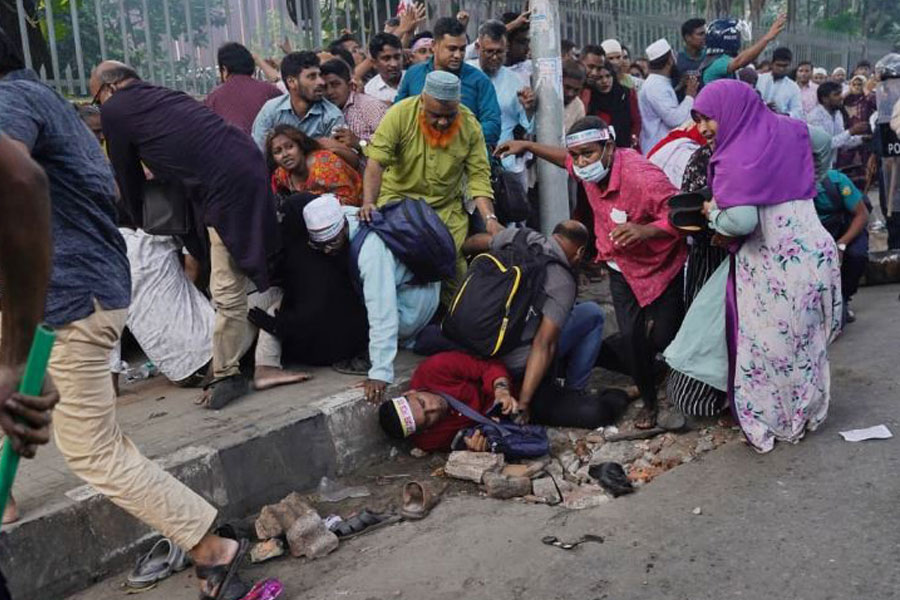 Around 4:00 pm, some of them tried to advance toward the state guesthouse Jamuna, a restricted zone where public gatherings are prohibited.