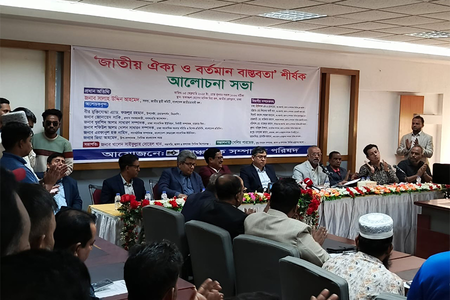 The Anchalik Sampadak Parishad organized the event titled "National Unity and Current Reality" at the Jatiya Press Club.