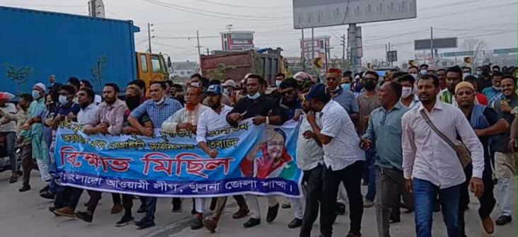 The procession was organised under the banner of the “Bangladesh Awami League, Khulna District Unit.”