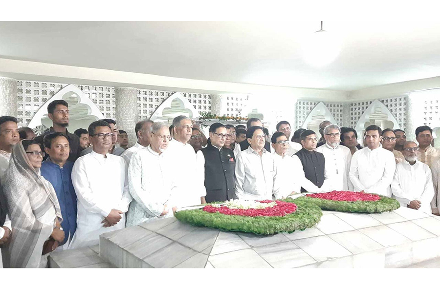 In the morning, on behalf of Prime Minister Sheikh Hasina, Obaidul Quader paid tributes to national leader Sher-e-Bangla AK Fazlul Huq. Later, he placed another wreath at his grave on behalf of the Awami League.
