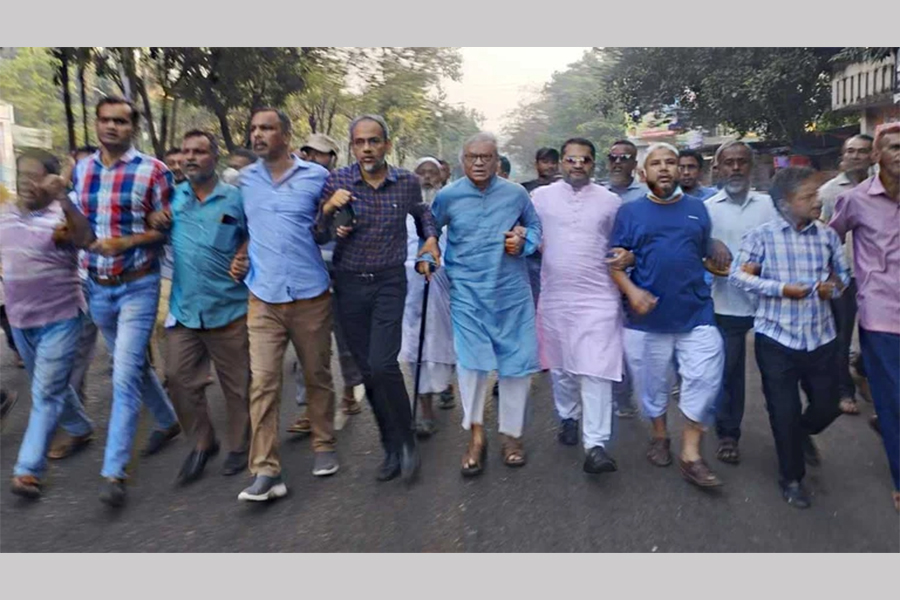 BNP Senior Joint Secretary General Ruhul Kabir Rizvi led a procession near the Motijheel Ideal School and College as the opposition party’s nationwide blockade programme resumed for the fourth time.