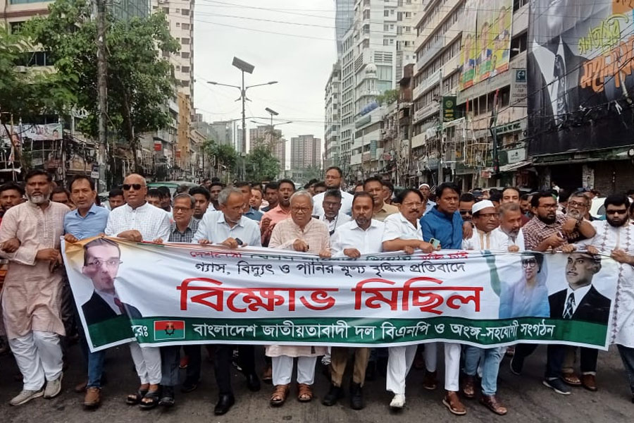 The leaders and activists of the BNP and its associate bodies staged the demonstration in front of the BNP’s Nayapaltan central office, demanding the unconditional release of party chairperson Khaleda Zia and protesting against increases in gas, power, and water prices.