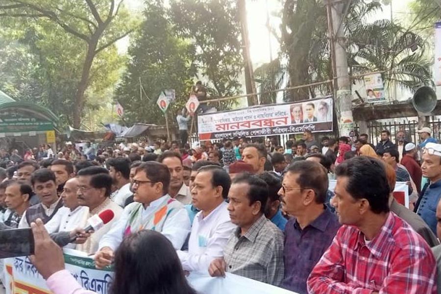 BNP leaders and activists along with the family members of the victims of enforced disappearance and political killings formed a human chain in the capital, marking the International Human Rights Day on Sunday.