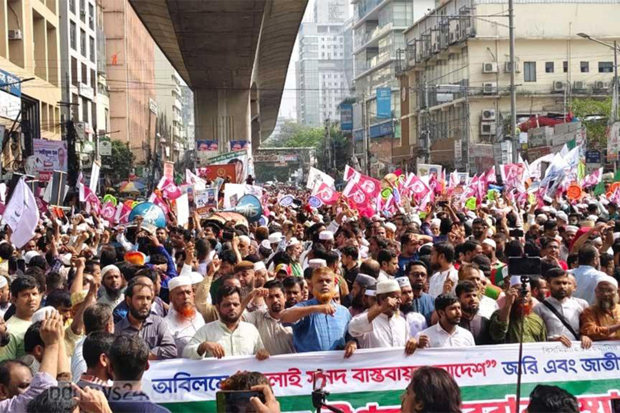 After 11:00 am on Thursday, the Dhaka Metropolitan South unit of Jamaat brought out a procession from Motijeel’s Shapla Chattar, which later converged at Paltan intersection for a rally, bdnews24.com reports.
