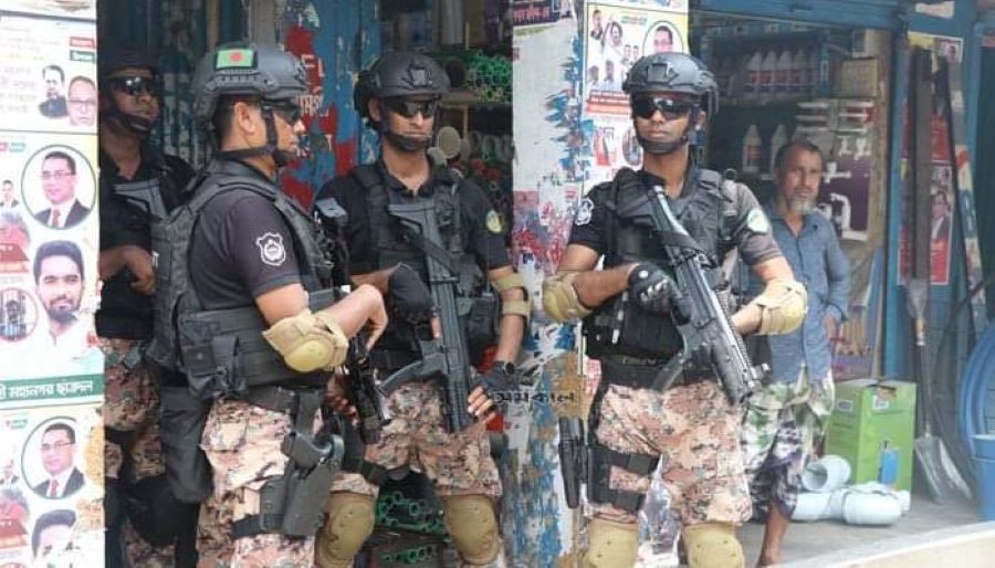 Members of law enforcement agencies cordoned off the BNP’s Rajshahi office at Malopara in the city and restricted gathering of people and movement of vehicles around the area on Tuesday.