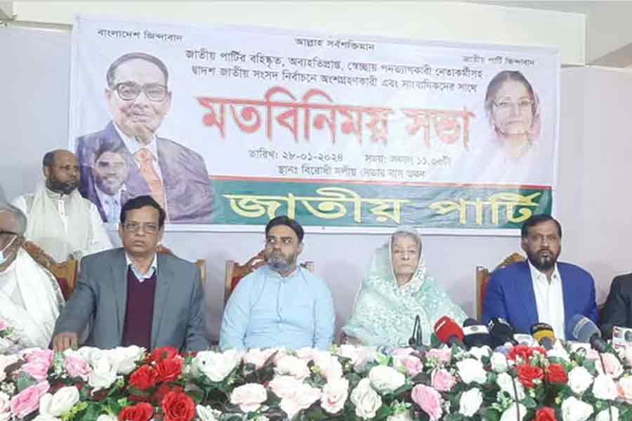 The Jatiya Party leaders and activists in attendance applauded the announcement.