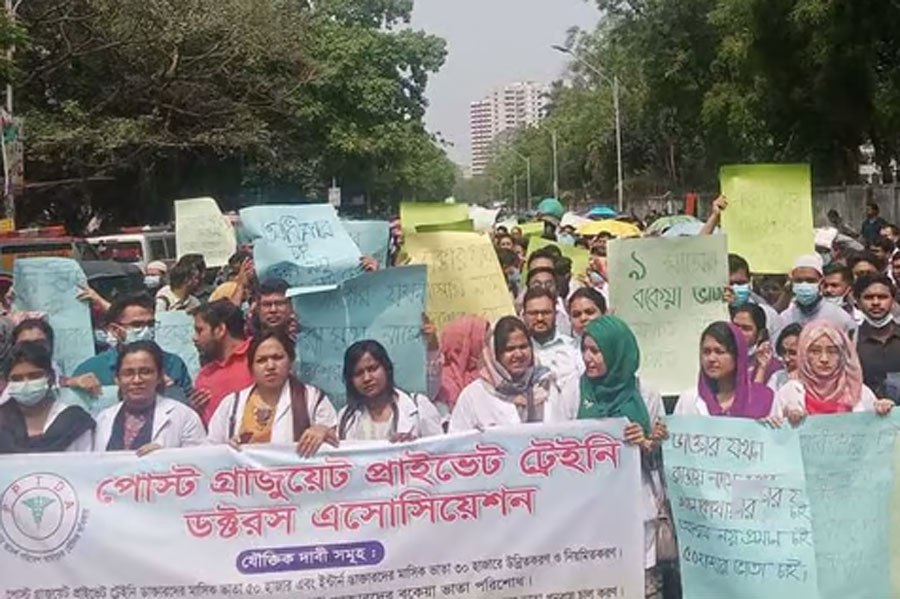 The physicians have been demonstrating for a long time demanding for a raise the allowance of postgraduate trainees to Tk 50,000. The amount was raised to Tk 25,000 from Tk 20,000 last year, but the physicians were not satisfied with the increase.