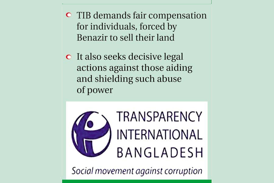 Terming such misuse by Benazir outrageous, TIB executive director (ED) Dr Iftekharuzzaman has said, "Allegations that the properties were forcibly acquired through intimidation using the ex-IGP's name and his family members as well as the collusion of law-enforcement and government agency personnel in carrying out these tasks are truly horrific."