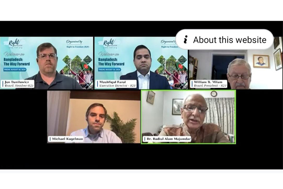 Right to Freedom Board Member Jon Danilowicz moderated the webinar while Right to Freedom Executive Director Mushfiqul Fazal Ansarey gave a brief introduction of the panel of speakers and Ambassador (retd) William B Milam, Board President of the R2F offered opening remarks.