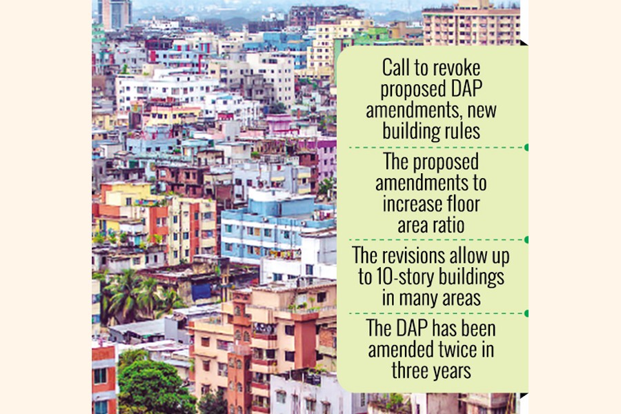 A group of professionals, including planners and environmental activists, on Tuesday demanded immediate cancellation of the proposed amendments to Dhaka's Detailed Area Plan (DAP), saying that the changes will further worsen the city's livability issues, which are already in peril.