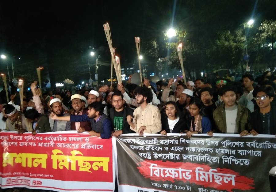 Rezwan Rifat, a student of the Law Department, said, “What the police did today is extremely disgraceful. The salary that teachers get is not enough to run their households. We want a fair investigation into the attack as well as the nationalization of Ibtedayi madrasa jobs.”