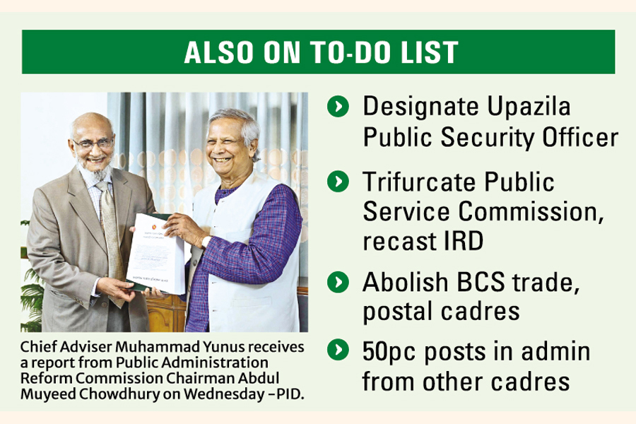Headed by Abdul Muyeed Chowdhury, the commission has prepared the recommendations after wide-scale consultations with cross-sections of people in a bid to make the public administration more dynamic, efficient and effective.
