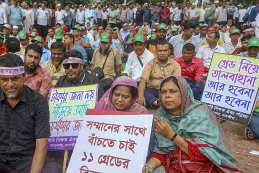 From the rally, they called upon the government to realise their three-point charter of demands including salary upgrade to the 11th grade.